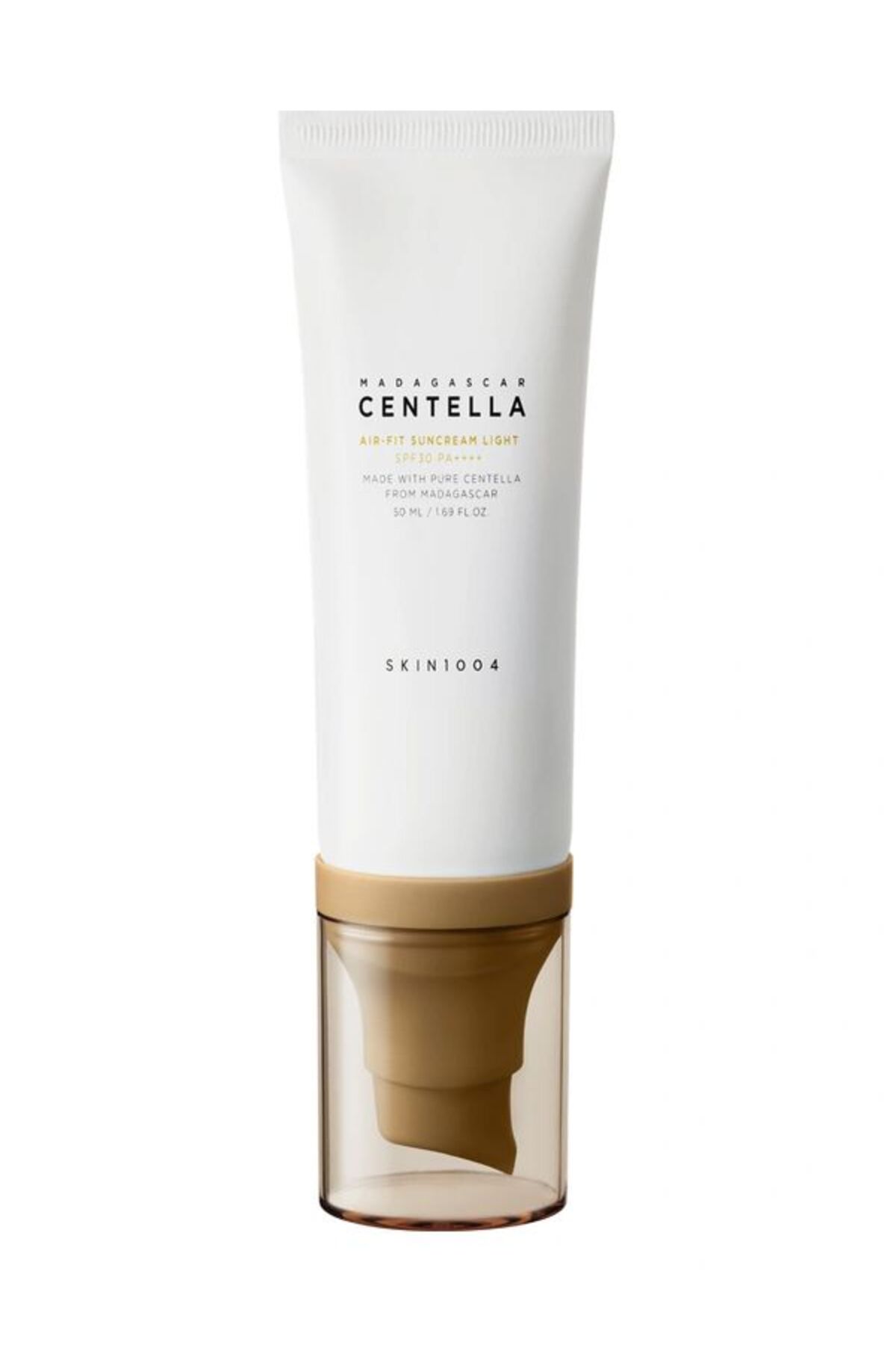Skin1004 Madagascar Centella Air-Fit Suncream Light SPF30 PA++++ 50ml – Centella asiatica iceren ultra hafif gunluk gunes kremi. Yapismaz doku, beyaz iz birakmaz, hassas ciltler icin ideal.