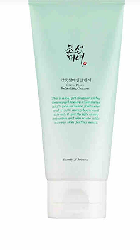 Beauty of Joseon Green Plum Refreshing Cleanser, düşük pH değerine sahip Kore jel temizleyicisidir. Cildi nazikçe temizlerken nem dengesini korur. Günlük kullanım için ideal, tüm cilt tiplerine uygun formülüyle cilt bakım rutininizin vazgeçilmezi.
